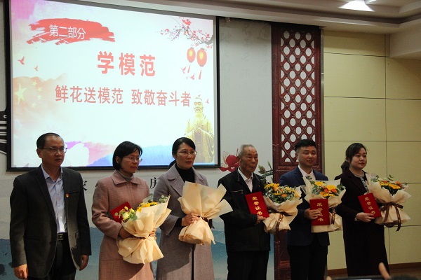 本次道德讲堂活动分“唱歌曲、学模范、诵经典、谈感悟”四个环节。活动在同唱《公民道德歌》中拉开序幕,全体同志沐浴道德阳光,感悟道德力量,唱响心中的道德情怀!在观看“燃灯校长”张桂梅的事迹短片中,张校长那平凡的话语、朴素的言行,诠释了一个教育者最美的初心,感动了在场的每一个人。