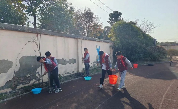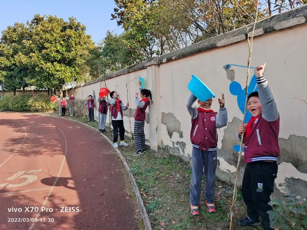 学生自带树木,为学校的绿化建设出一份力,他们在实践中,体会劳动的快乐,合作的精神.....为美化校园环境贡献自己的力量。