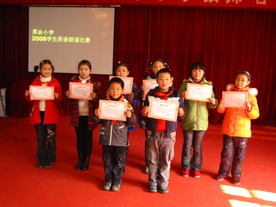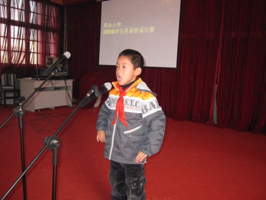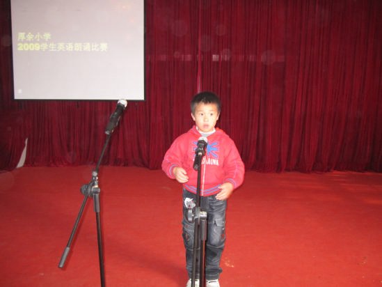 “厚余小学2009学生英语朗诵比赛” 于11月24日落下帷幕。28位小选手用他们稚嫩的童音,演绎了英语的精彩。经过角逐,8位选手脱颖而出,获得一等奖,他们将代表厚余小学参加武进区英语朗诵比赛。在这里向这些同学表示祝贺,并预祝他们在区英语朗诵比赛中取得好成绩。