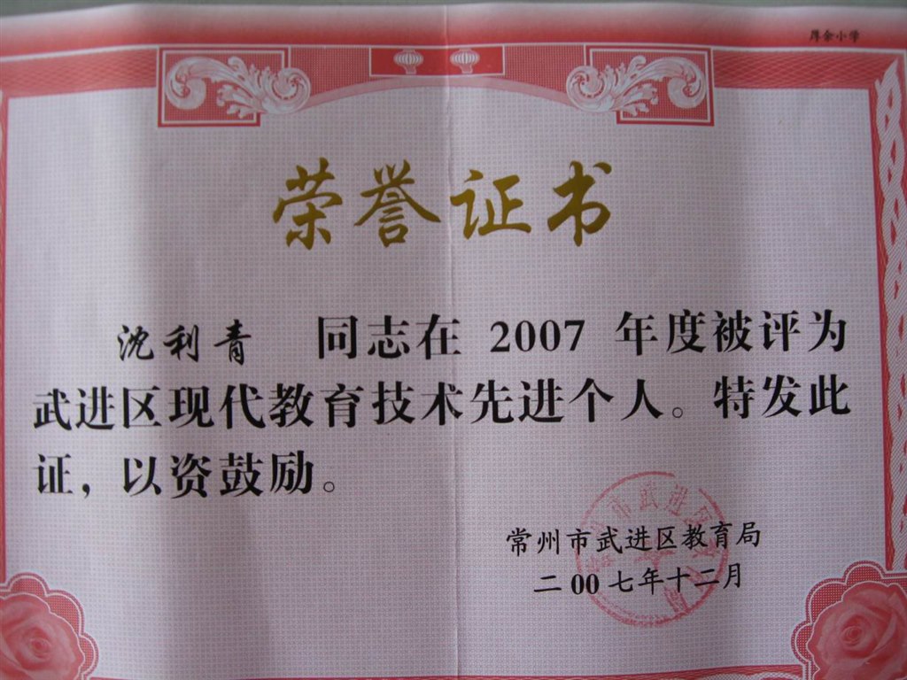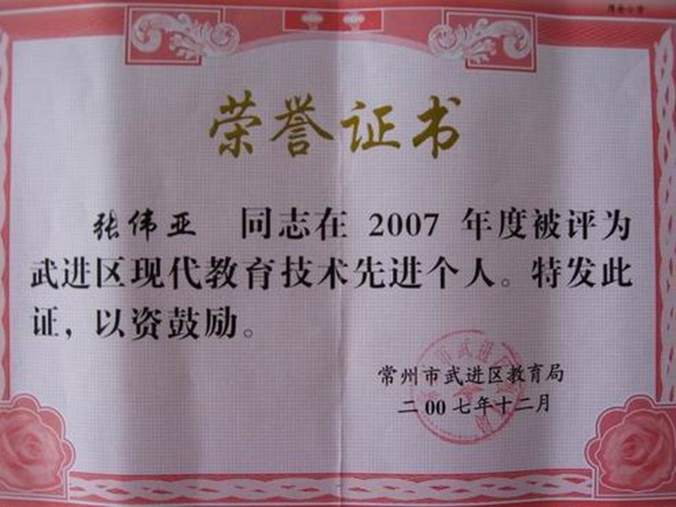 热烈祝贺课题组沈利青,张伟亚两位老师被评为武进区现代教育技术先进个人